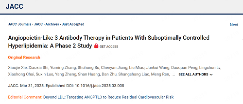 双喜临门:恒峰g22ANGPTL3单抗SHR-1918 Ⅱ 期研究亮相ACC,成果同步见刊JACC